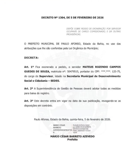 Após uma discussão no Restaurante Popular, o nutricionista Matheus foi demitido. O fato chama ainda mais atenção por se tratar do neto de Manoel Rezende, conhecido publicamente como um dos maiores defensores do prefeito de Paulo Afonso.