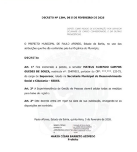 DESTAQUE Após discursão no Restaurante Popular, neto de Manoel Rosendo é demitido da Prefeitura de Paulo Afonso Leia Mais » 5 de fevereiro de 2026